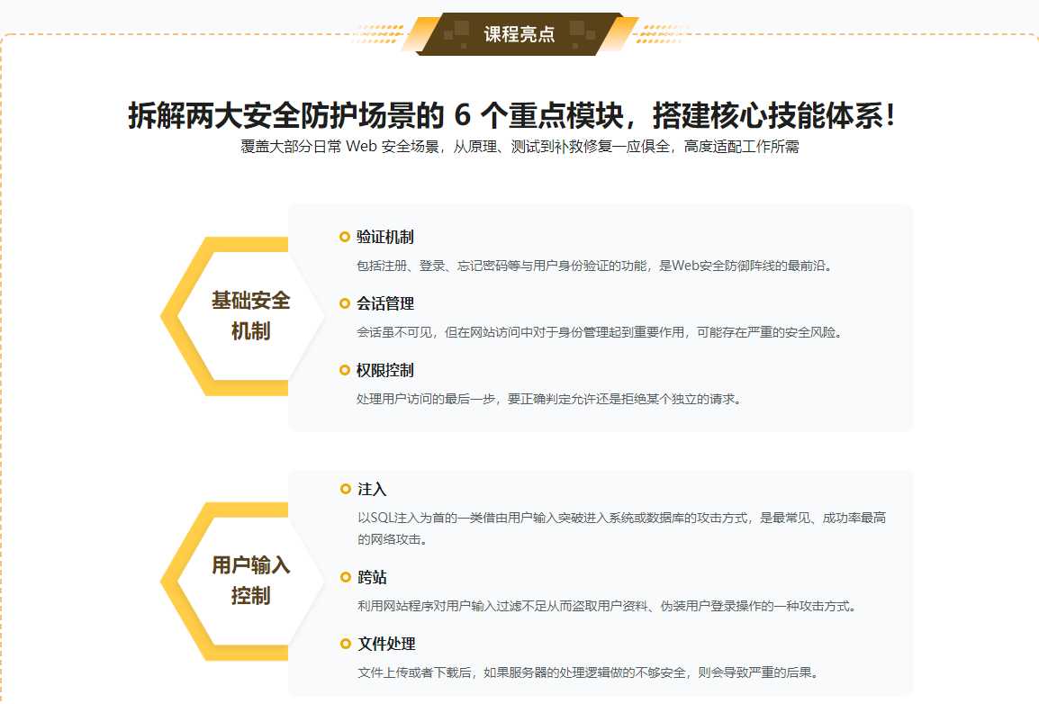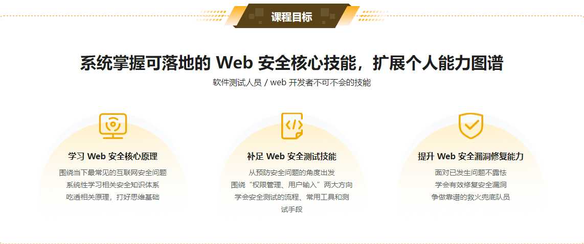 Web 安全实战宝典前沿的Web安全实践干货,提升你的安全保障能力随着互联网的快速发展,数据泄露、账号盗取、信息获取等成为不可忽视的问题,安全保障也成为软件开发中的重要一环。本课程讲师是国内安全领域的技术专家之一,将带大家系统性学习目前网络安全的核心技能体系,提升安全保障能力。