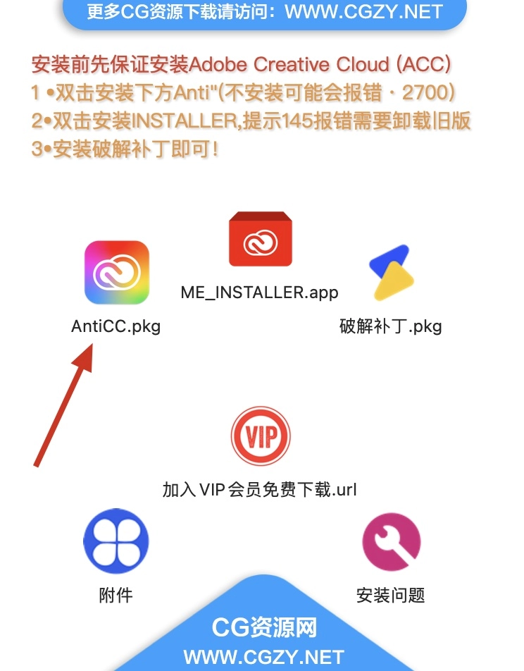 2.双击安装AntiCC.pkg(不安装这个可能出现-2700报错)