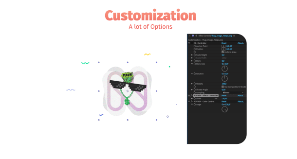 这是一套图形文字图层出入动画预设包,包含约200种动画预设,分为9大类(大小、衰减、图案、遮罩、信号损坏、扭曲、颜色变化),多种预设可叠加使用,这样可以组合出约1000多种不同的动画;可以使用在自己的图片,文字,LOGO等图层对象上;多种参数控制。可直接拖素材的标记点来控制出入动画长短。